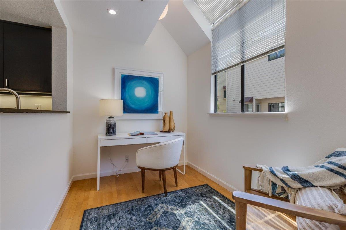 Exceptional Loma Verde Village end unit nestled on a tranquil cul-de-sac. Enjoy an abundance of natural light, recessed lighting, and hardwood floors in the living areas. The living room features a gas fireplace, soaring ceilings, and sliding glass door access to a private patio. A formal dining room on the second level overlooks the living area. The kitchen, updated with new quartz countertops, sink and faucet, is open to a versatile breakfast area or small office space. A power room is conveniently situated on this level. All bathrooms have been tastefully updated, with new lighting, mirrors, hardware, and new vanities in two of the bathrooms. All three bedrooms are situated on the top floor. The generously sized primary suite boasts an oversized closet, balcony, tub with shower, and double sinks in the ensuite bathroom. Additional features include in-unit laundry and an attached 2-car garage. Loma Verde Village offers an unbeatable Midtown location. Enjoy proximity to multiple parks, a variety of neighborhood-friendly shops and restaurants, and easy access to Highway 101, commute routes, and leading tech campuses such as Apple, Google, and Meta. Ideally situated within the award-winning Palo Alto school district. Make this stunning residence your new home!